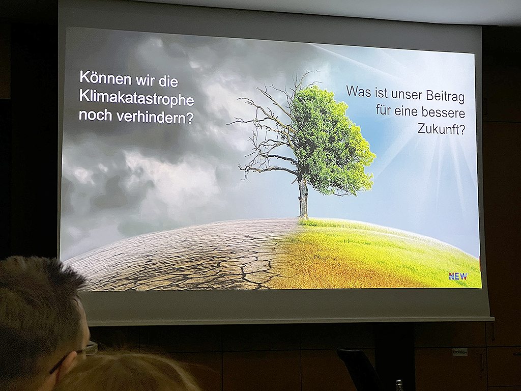 Was unternimmt die NEW, um die „Klimaneutralität“ zu erreichen? Projekte für die Klimaschutzstrategie sind z.B. CO2-neutrale Wärme: So gibt es bei der Quartierslösung Wärme aus Erde und Abwasser und eine effiziente Kopplung von Strom und Wärme. Die CO2-neutrale Mobilität sieht u.a. die Elektrifizierung der Busflotte und ÖPNV-On-Demand, innerbetriebliches und quartierweises E-Car-Sharing sowie den Ausbau der Ladeinfrastruktur vor. Des Weiteren soll u.a. CO2-neutraler Strom durch den Verkauf oder Verpachtung von Photovoltaikanlagen produziert werden. Fazit des Abends ist: „Die Zukunft ist, was wir daraus machen“, denn „Wer in Zukunft nicht nachhaltig wirtschaftet, wirtschaftet gar nicht mehr!“ Der Abend klang mit einem entspannten Get-together aus.