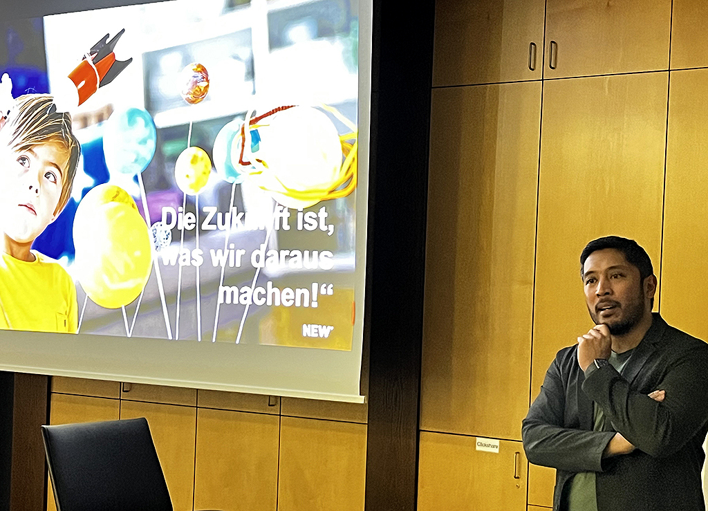 Im Anschluss an die Mitgliederversammlung des Marketing Clubs Mönchengladbach referierte Daniel Quillao, Stabsabteilungsleiter Unternehmensentwicklung, zum Thema „Klimaneutralität als Ziel – Aufgabe und Herausforderung der NEW“. Daniel Quillao stellte zu Beginn die Frage, wie hoch der durchschnittliche Energiebedarf in Deutschland für eine Person am Tag ist, um ein Gefühl zu bekommen, wie energieintensiv unser Leben ist. Er erläuterte, dass ein Radfahrer 1 kwh in zehn Stunden erreichen würde, somit müssten 120 Radfahrer zehn Stunden lang in die Pedale treten, um den Tagesbedarf einer einzigen Person zu decken. Des Weiteren zeigte er auf, wie hoch die durchschnittlichen CO2-Emissionen pro Person und Jahr in Deutschland sind. Die 10,8 t pro Person und Jahr setzen sich u.a. aus 2,2 t für Wohnen, 2,2 t für Mobilität und 1,7 t für Ernährung zusammen.