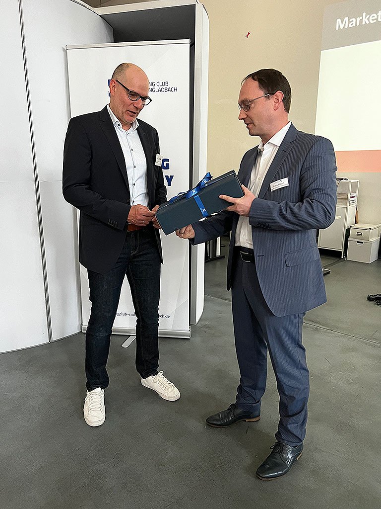Clubpräsident Frank Glatzel (re. im Bild) bedankt sich für den kurzweiligen Vortrag.
